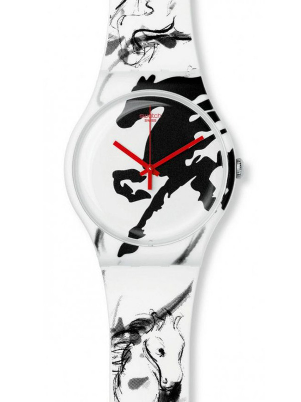 中国农历新年马年将至,充满年轻活力的Swatch(斯沃琪)手表品牌推出了中国生肖年2014年马年别注系列——Year of the Horse 腕表(ref. SUOZ169),浓浓中国水墨画的风格和飘逸俊朗的气质可谓是Swatch这款马年腕表的最大特色。