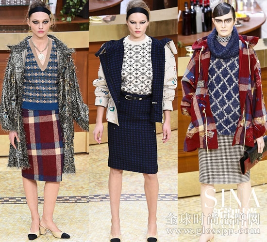 对于经典斜纹软呢元素的还原和改变,本季老佛爷也显示出了巧夺天工的创造力。H型的立体廓形和领口蝴蝶结的硬朗做派,裙装也可以穿出帅气。格纹套裙下移的侧兜,打破了原始比例,上世纪20-30年代的修长印象此刻被还原。