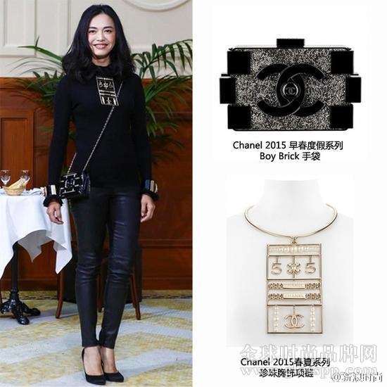 姚晨则身穿Paris-Salzburg高级手工坊系列黑色高领针织衫,搭配春夏金色珍珠项链和花朵造型手镯,身背Chanel 2015早春度假系列Boy Brick手袋亮相Chanel2015秋冬系列大秀现场,大只浮夸的配饰搭配全黑的造型令辣妈姚晨看起来格外个性时髦,优雅中不乏成熟女性的沉稳与干 练。