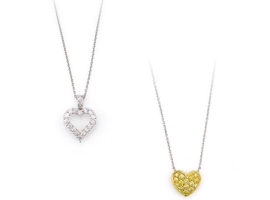 格拉夫圆形钻石心形吊坠项链 +格拉夫密镶黄钻心形吊坠项链