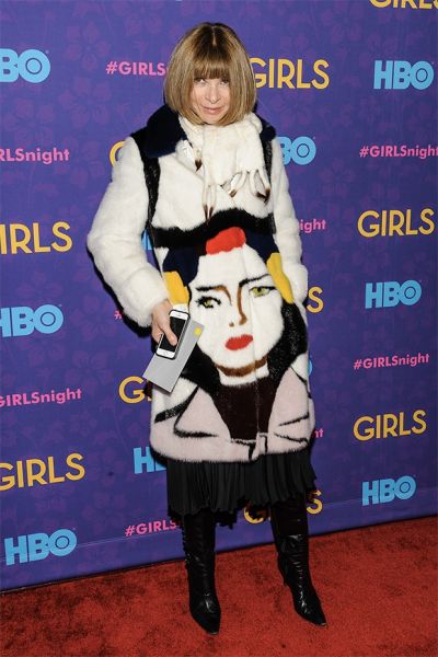 最近,有一款大衣的出镜率相当高,辨识度也是一等一,那就是PRADA 2014春夏人物头像皮草大衣。春夏?皮草?重点不在这里,而在那一个巨大的人像。其实,从其秀场照片来看,这巨大的人物头像元素被广泛地运用于连衣裙、外套等单品上。只不过,皮草和现在的季节比较搭调,众多走在时尚潮流前头的名人纷纷将它披上身,其中包括两位名为Anna的时尚女魔头:Anna Wintour(《Vogue》杂志美国版主编)和Anna Dello Russo(《Vogue》日本版自由时装总监及创意顾问)。