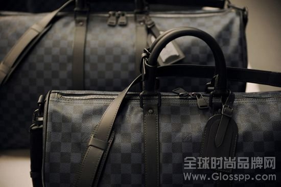 呼应春夏男装风潮, Louis Vuitton 也推出蓝色格纹Keepall背囊式的旅行袋。