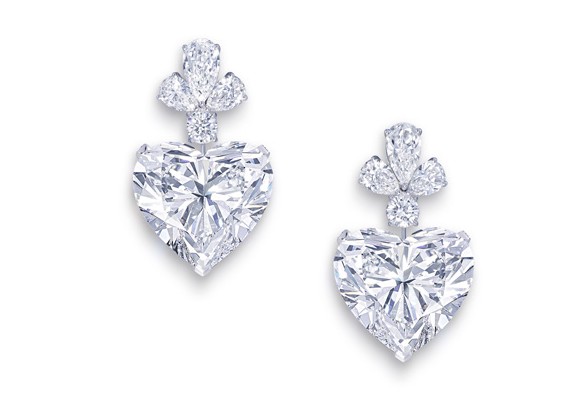 The GRAFF SweetheartsD色无瑕心形钻石耳环 分别重51.53克拉和50.76克拉