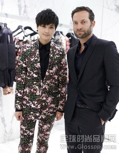 纪梵希服装品牌2014早春新品女装运用白色、黑色、米色、卡其色和海军蓝打造出纯色造型,与印花图案或是遍布全身的玫瑰、圣母玛利亚及圣婴图案印花共同带来设计的变幻感。李宇春便身着一套玫瑰印花图案的西装出现在店内,利落的剪裁配上玫瑰印花,率性的同时也增添了优雅与个性。